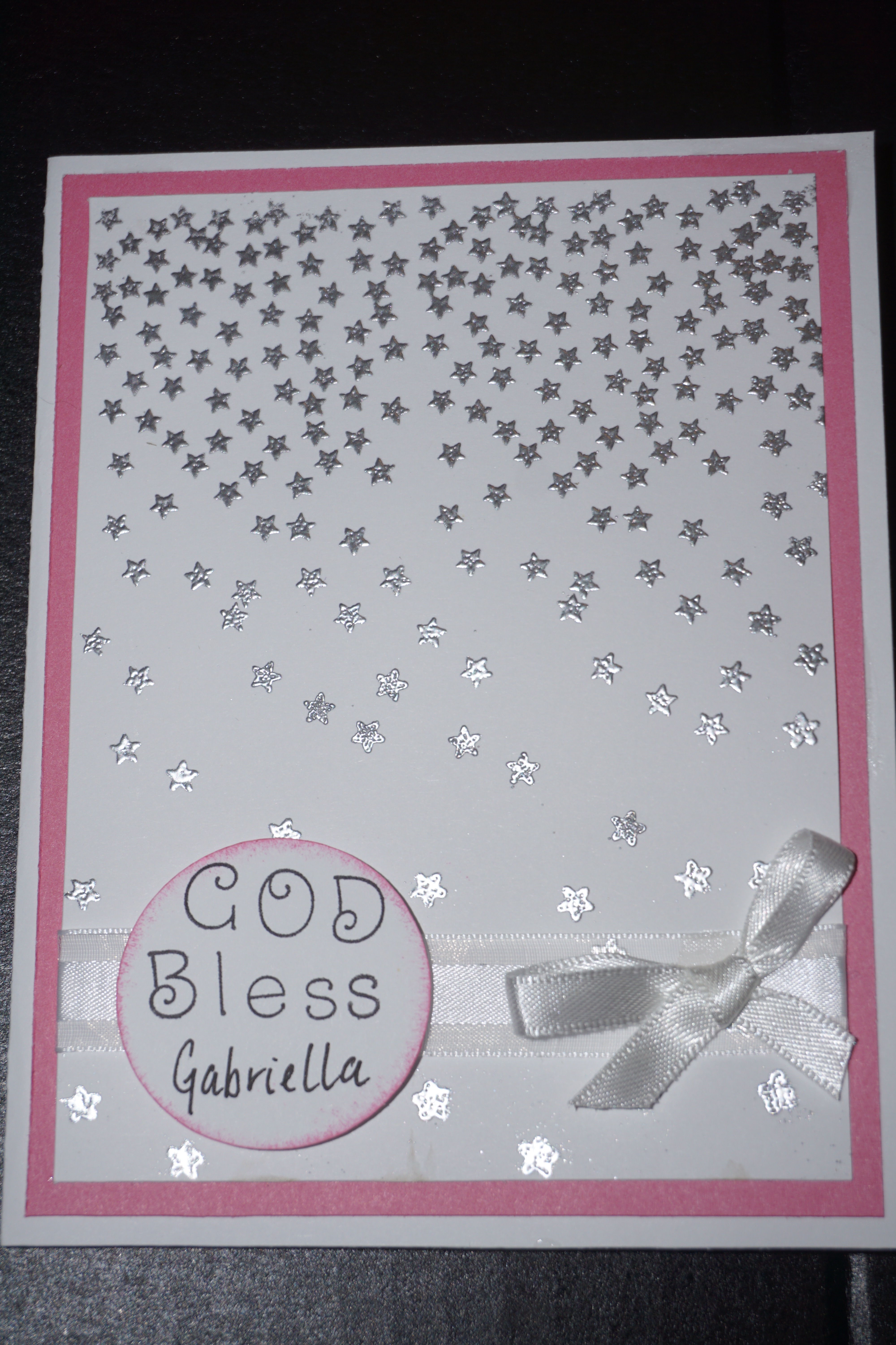 Sunday was a day for celebration. Not only was it Father’s Day here in Australia but it was also the day my friend had her baby girl Baptised. I wanted to make a card for her but as with life time got away from me. So the morning of I spent 30 minutes trying to decide what to do. I didn’t have any religious stamps so I decided to use the stars from the new Charming Cascades stamp set. This stamp set is my favourite from the new Annual Inspirations Idea Book.
